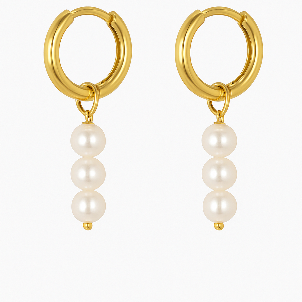 עגילי חישוק עם פנינים עשויות מפחדת אל חלד (stainless steel) בחירה קלאסית עדינה ומרשימה