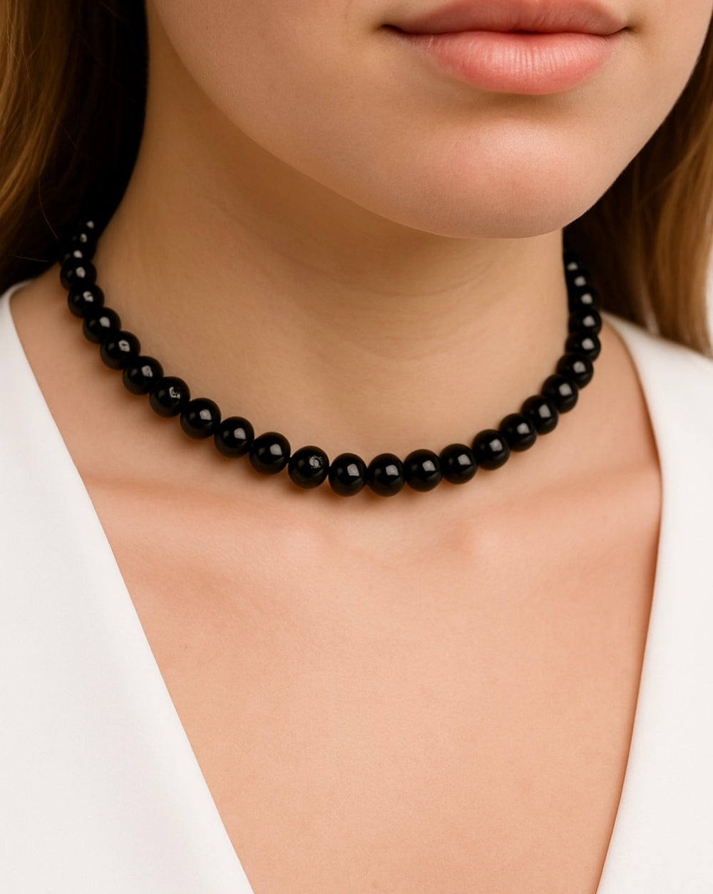 שרשרת צוקר חרוזים בצבע שחור, עשויה מפלדת אל-חלד (Stainless Steel).