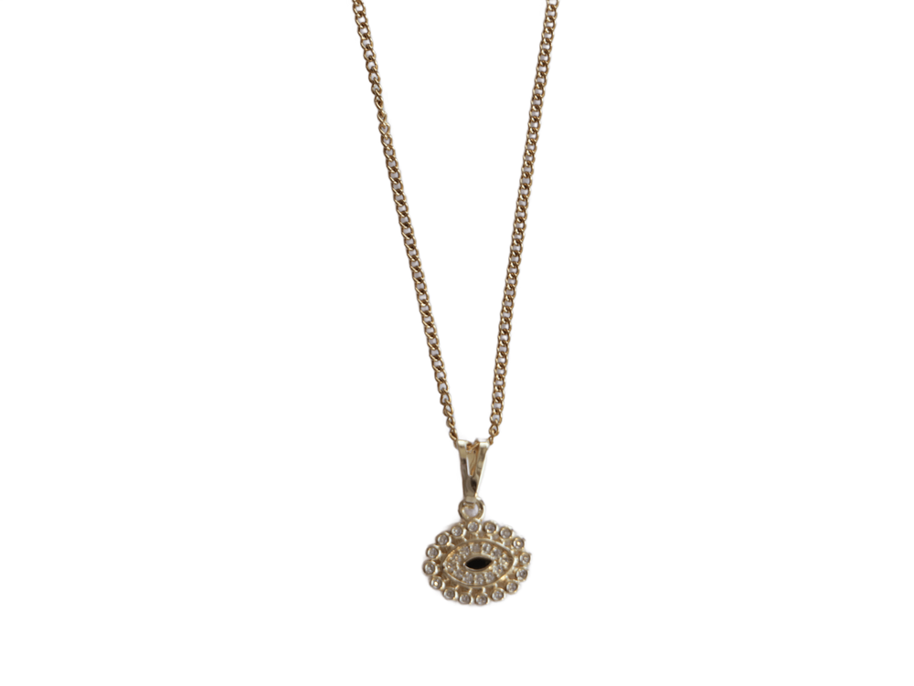 שרשרת סטיינלס סטיל עם תליון עין מעוטר אלגנטית.