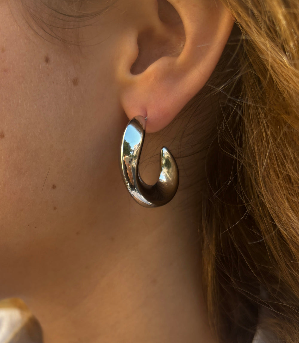 עגילי חישוק בעיצוב נקי ואלגנטי, עשויים מסטיינלס סטיל עמיד בגוון כסף קלאסי. מתאימים לכל לוק.