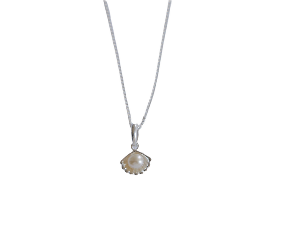 שרשרת כסף 925 טהור עם תליון צדפה עם פנינה אלגנטית.