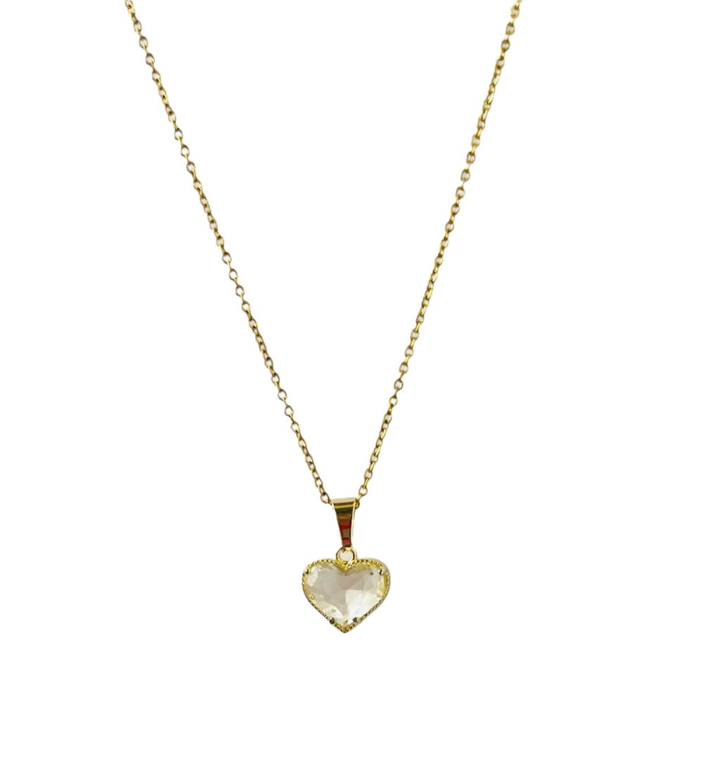 שרשרת סטיינלס סטיל עם תליון לב קריסטל שקוף אלגנטית.
