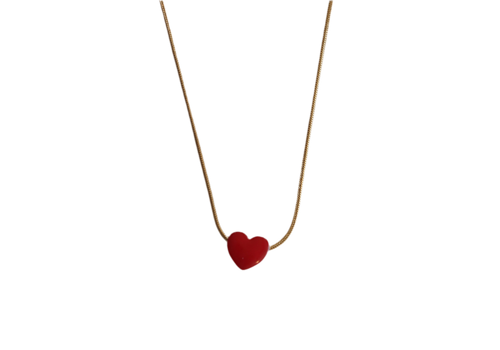 שרשרת סטיינלס סטיל עם תליון לב אדום אלגנטית.